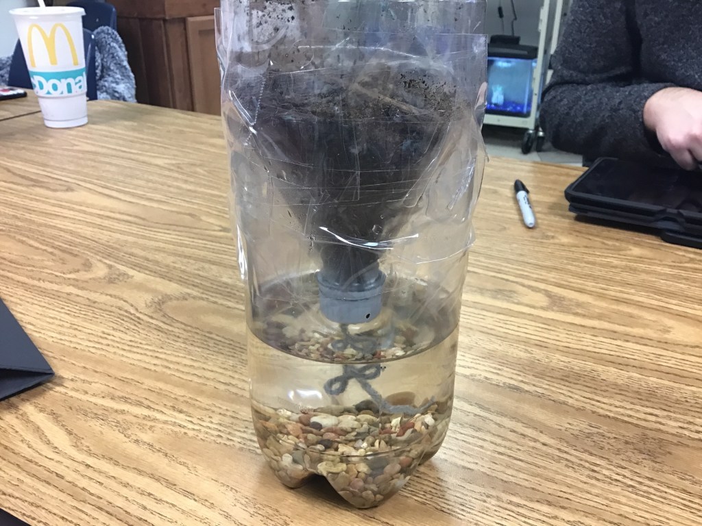 Clarity of the water seems clear, no plant has sprouted just dirt in the bottle. Nothing has happened.